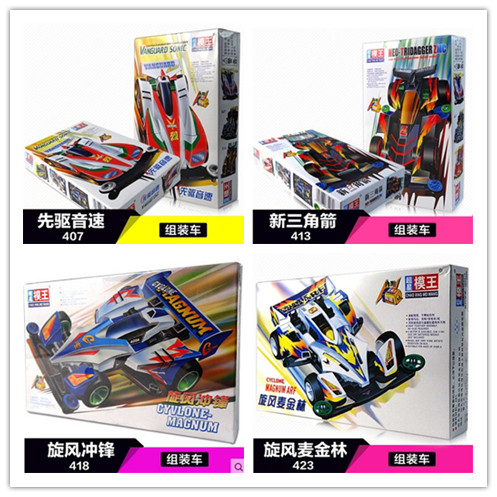 產品介紹:超星模王四驅賽車拼裝模型(動畫片四驅兄弟款式),懷舊精典,內附模王高速馬達,裝配簡易,不需粘合劑,超低底盤,迅速而穩定。另購五號電池2節。南孚電池效果更好。同類有多款